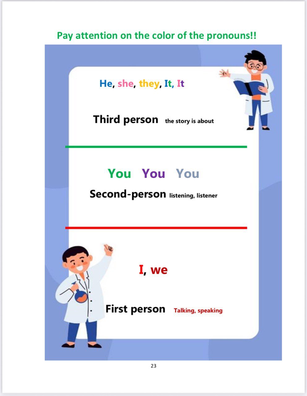 In this fourth book of the seriess book the noun, pronoun, preposition, adjective, articles are made color coded to make the learning easy.